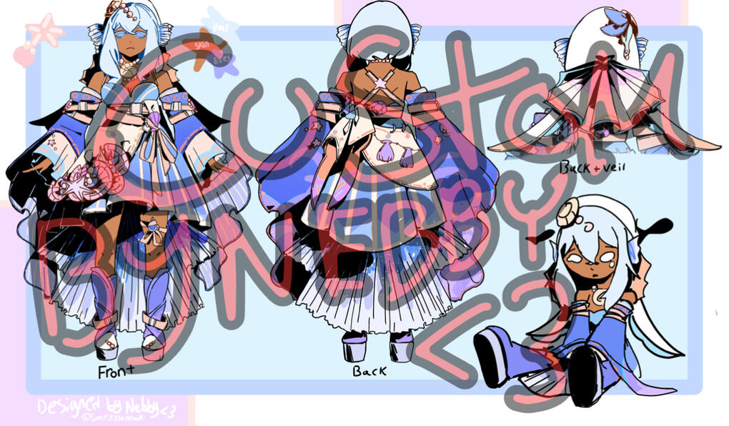 A commission where I design a character based on mood boards, ideas, or the commissioner’s tasteall custom designs are 10$+ the base price of whatever rendering style you want if you wish to have a full reference sheet of the design, it is 25$+ the rendering style of ur choice