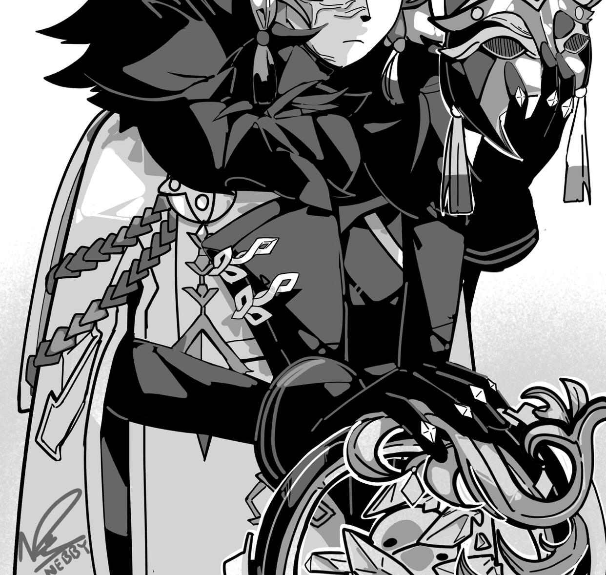 Utilizes shapes, one or two shades of grey, black, and white to render + relies heavy on line art.